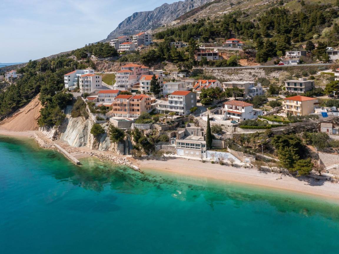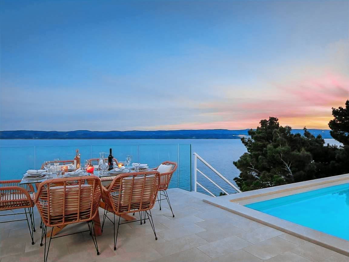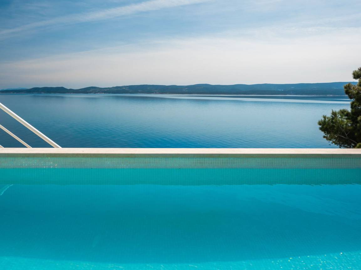 sea 50 m pebble beach 50 m sand and pebble beach 50 m store 400 m restaurant 500 m airport Split-Trogir 55 km Villa consists of: - living room - canteen - living room combined with dining room - separate kitchen Bedrooms 6 - double bed 4 - with two single beds 2 - sofa bed 1 Villa has: Heating/cooling object - Conditioners - Fireplace - Electric heating Multimedia - TV (number of TVs) 4 - Satellite channels - Stereo System - Radio Kitchen - Crockery, cutlery, etc. - Fridge - Microwave - Washing machine - Dishwasher - Iron and ironing board - Coffee machine - Kettle - Toaster Communications - WI-FI Accessories for kids - Crib - High chair - Children's toys Accommodation with pets - on demand Territory: - Parking for the number of cars 2 - Garden - Terrace - Garden furniture - Barbecue - Pool heated - Sun loungers - Parasol - Summer shower - Summer Kitchen Short description:
