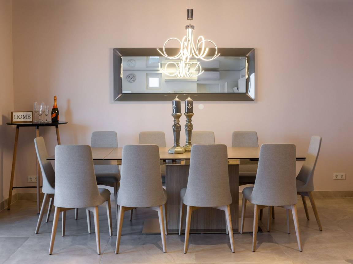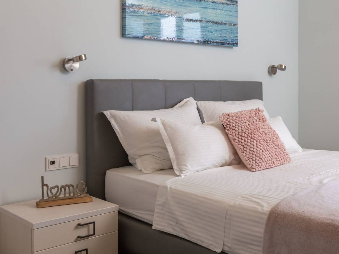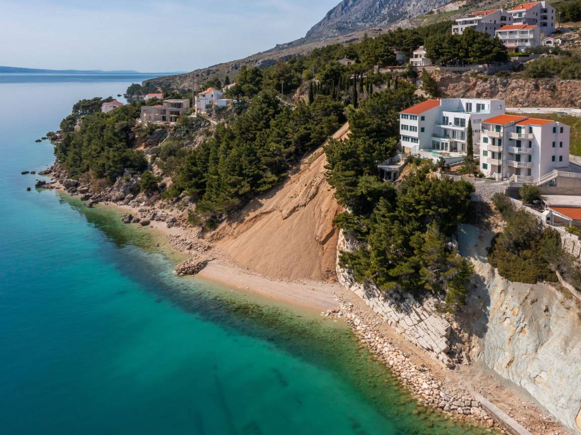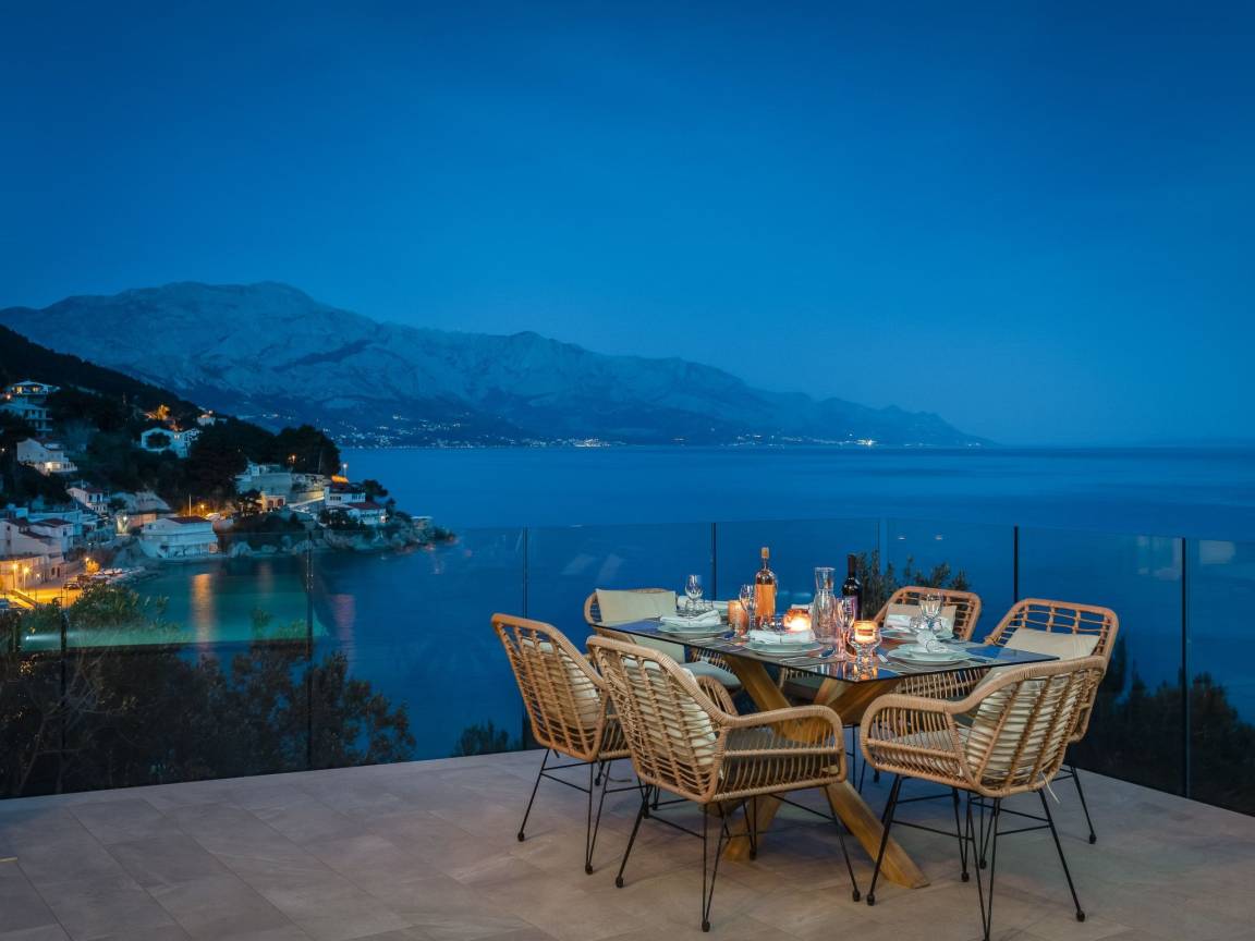 sea 50 m pebble beach 50 m sand and pebble beach 50 m store 400 m restaurant 500 m airport Split-Trogir 55 km Villa consists of: - living room - canteen - living room combined with dining room - separate kitchen Bedrooms 6 - double bed 4 - with two single beds 2 - sofa bed 1 Villa has: Heating/cooling object - Conditioners - Fireplace - Electric heating Multimedia - TV (number of TVs) 4 - Satellite channels - Stereo System - Radio Kitchen - Crockery, cutlery, etc. - Fridge - Microwave - Washing machine - Dishwasher - Iron and ironing board - Coffee machine - Kettle - Toaster Communications - WI-FI Accessories for kids - Crib - High chair - Children's toys Accommodation with pets - on demand Territory: - Parking for the number of cars 2 - Garden - Terrace - Garden furniture - Barbecue - Pool heated - Sun loungers - Parasol - Summer shower - Summer Kitchen Short description: